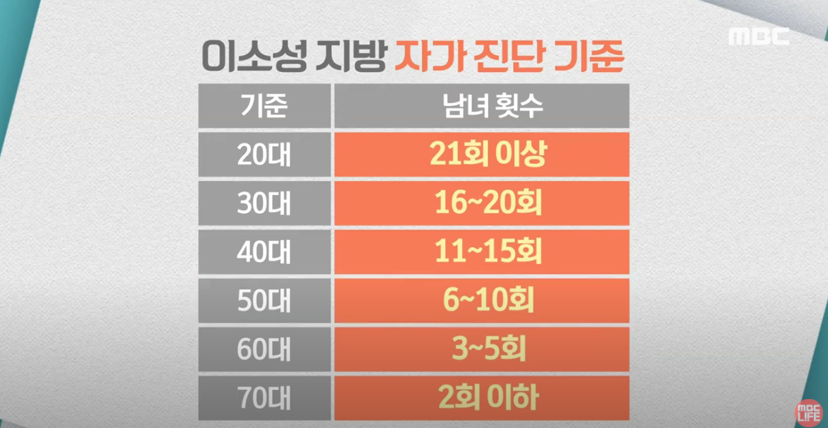 그에 따른 앉았다 일어나기 횟수로 이소성 지방을 판단할 수 있습니다.