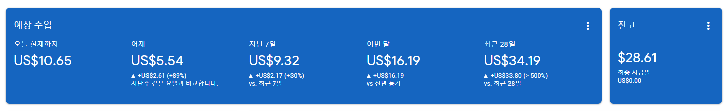 위 수익은 제가 첫 애드 고시 통과 후 수익을 냈을 당시의 사진인데요.