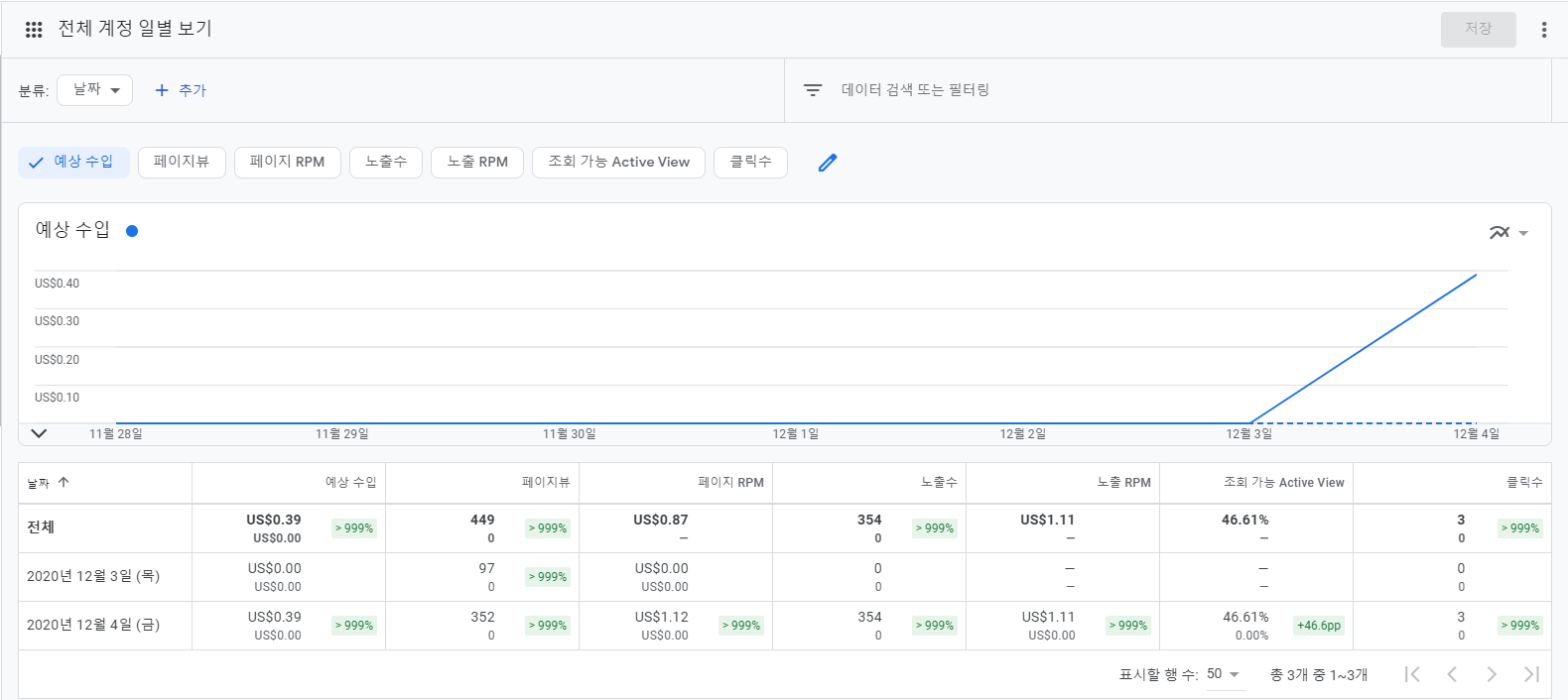 두 번째 목표는 애드센스 수익 평균 5달러를 만드는 겁니다.