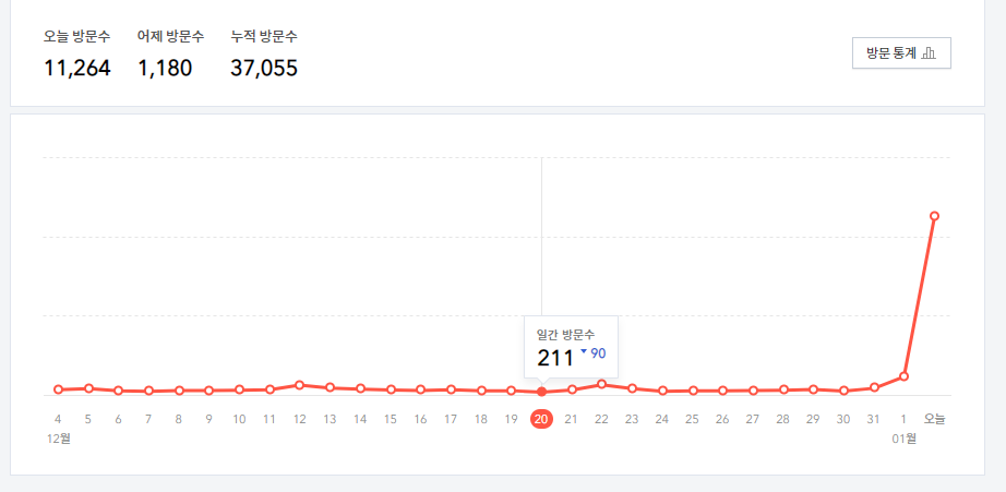 지금까지의 방문자수가 초라해질 만큼 엄청난 상승 그래프를 보여주네요.