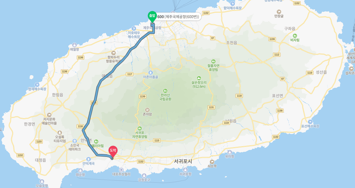 차로는 40분 정도네요. 제주도에서는 렌트해야 할 것 같아요.