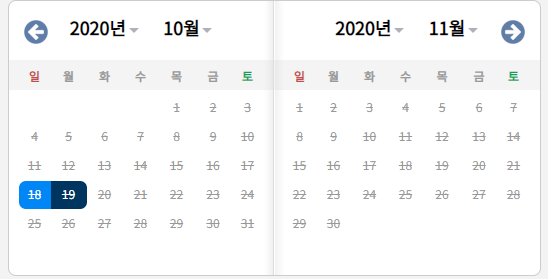 저 수많은 빗금 쳐진 날짜들이 다 예약이라는 거네요.