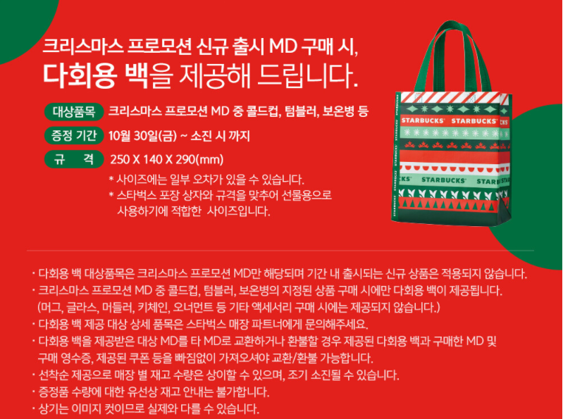 그리고 이번 크리스마스 MD 중 콜드컵, 보온병, 텀블러를 구매하시면 [다회용 백]을 증정하는 이벤트도