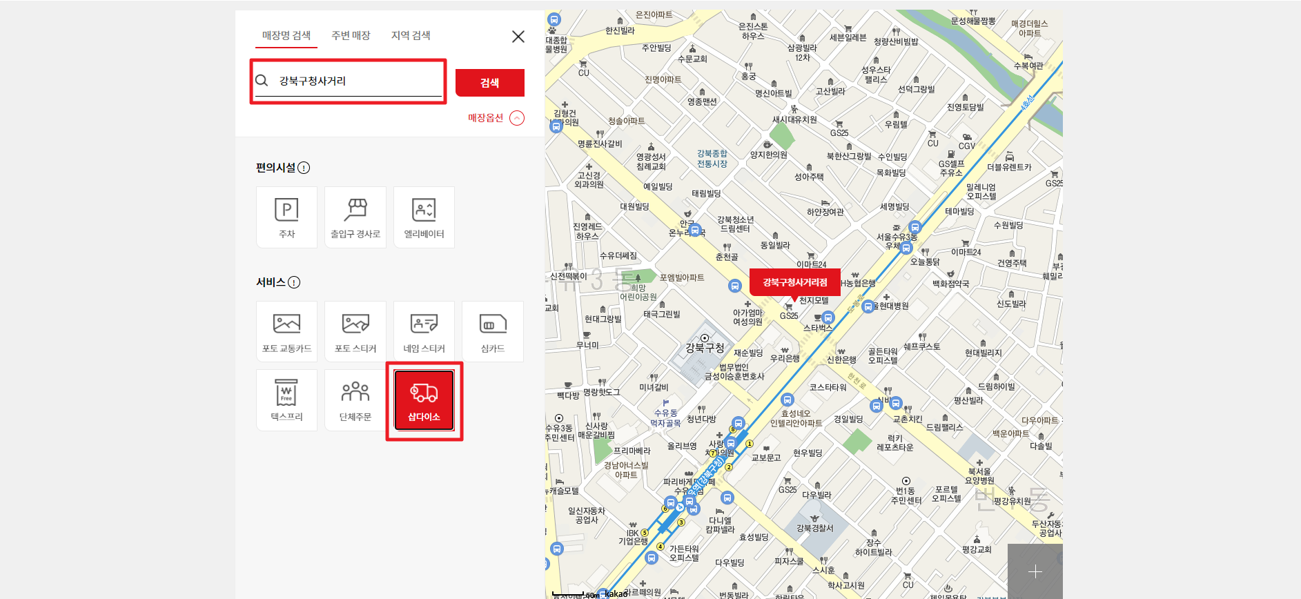 그다음 검색에서 매장명으로 직접 검색하시거나, 현재 위치기반의 매장, 지역 검색으로 검색해줍니다.