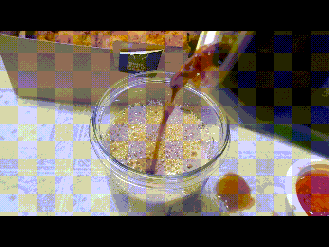 치킨과 콜라도 괜찮지만 저는 '치맥'을 더 사랑합니다. 그러니 오늘도 빠질 수 없겠죠. '말표 흑맥주'를 제가 운동 후 단백질 셰이크 먹을 때 사용하는 통에 따라보았습니다. 한 손으로 찍고 한손으로 따르려니 수전증 + 흘림;