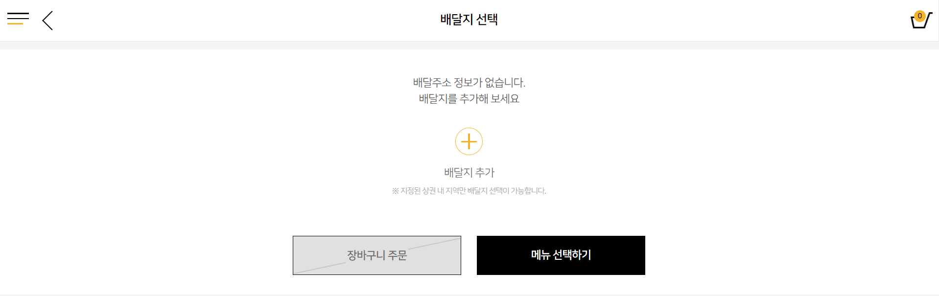 2 . 회원 가입 후 배달지를 설정합니다.