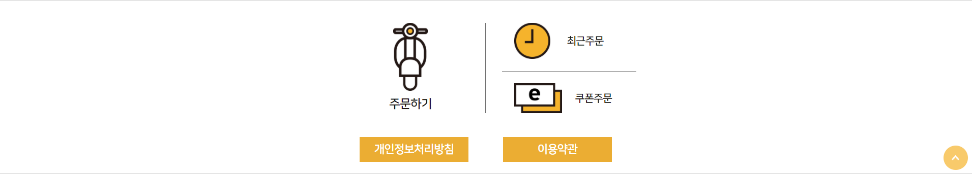 온라인 주문으로 들어오셨다면 위 사진과 같이 '배달료 별도 안내'와 함께 배달 or 포장 주문 창이 뜨는데, 위 사진은 온라인으로 직접 주문할 때 사용하고 합니다. 우리는 'e-쿠폰'을 사용할 것임으로 '쿠폰 주문'을 눌러줍니다.