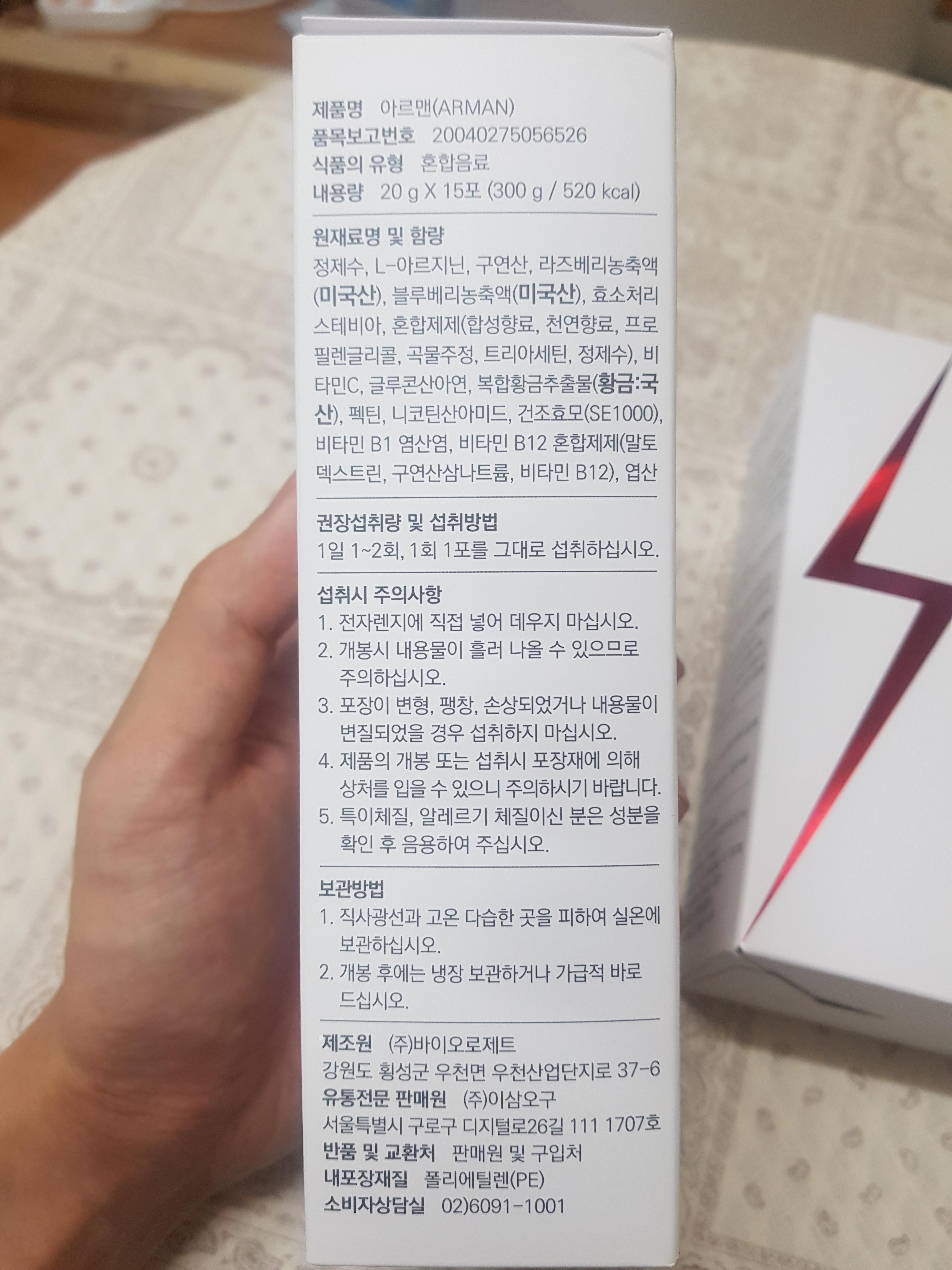 - 운동할 때 단백질 셰이크도 먹고 있지만 그거와는 다르게 아르맨은 몸을 움직일 수 있게 하는 에너지를 주는 느낌이라고 해야 하나, 제품 설명에 운동 시 부스터 효과를 느끼고 싶으면 먹으라고 하는데, 제가 구매하게 된 이유도 먹자마자 첫날 운동효과를 봤기 때문이지요. 확실히 효과가 있는 것 같습니다.