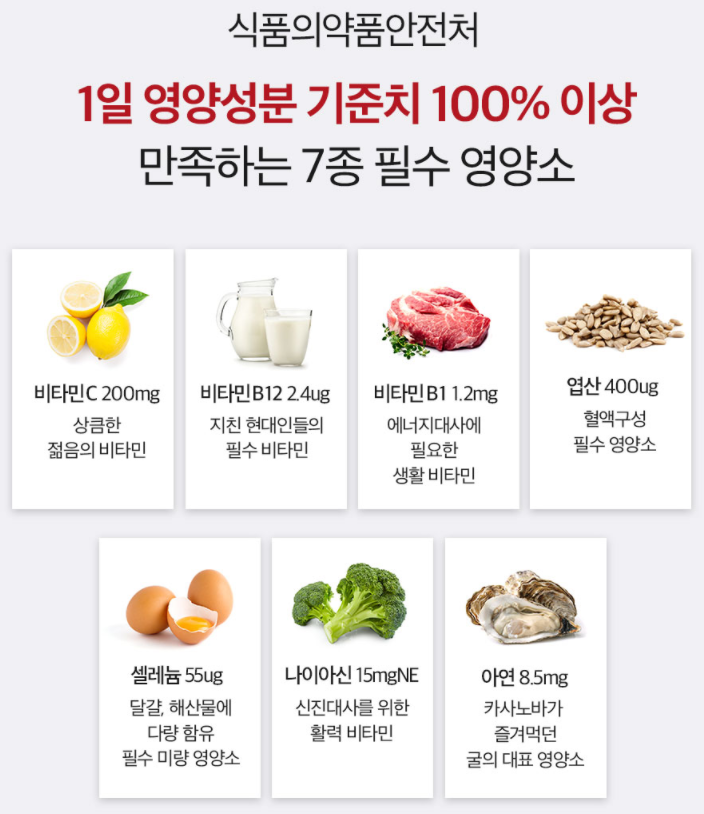 '아르기닌'이란 성분은 인체에서 꼭 필요한 20가지 아미노산 중 한 가지로 굴, 장어에 많이 들어있다고 합니다. 그런데 우리가 맨날 장어랑 굴을 먹을 순 없잖아요? 그렇게 먹으면 물리기 전에 통장이 바닥날 듯.. 아르맨에는 그 '아르기닌'이라는 성분을 고용량으로 모아놨습니다. 그 밖에도 비타민 C, 비타민 B1, 엽산, 아연 등 하루에 필요한 영양성분들을 같이 넣어 영양제로서의 기능도 챙겼네요.