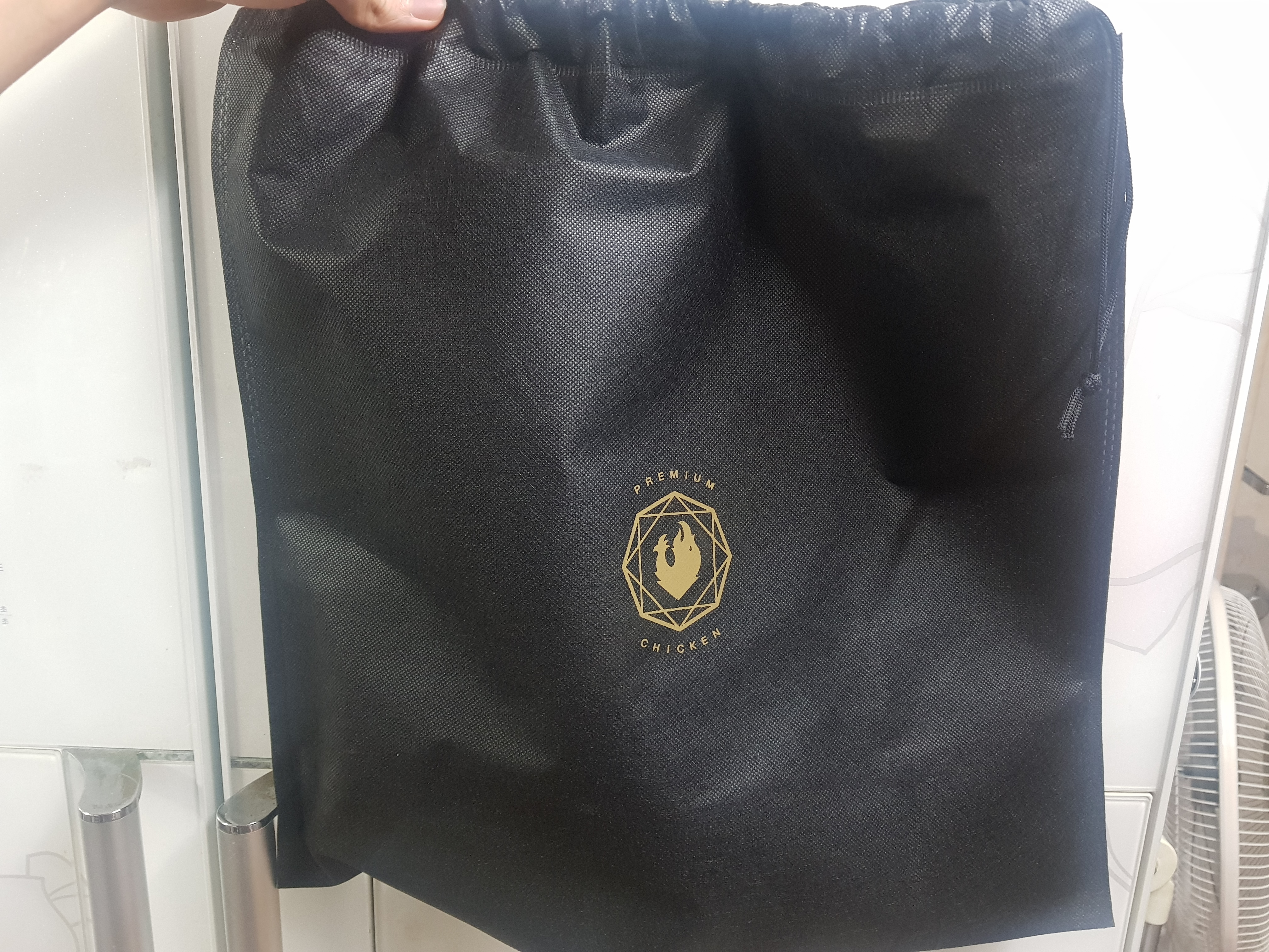 푸라닭 치킨은 의류 살 때처럼 더스트백 같은 곳에 치킨이 고이 담아져 옵니다. 이게 실제로 보면 상당히 커요. 다른 치킨 브랜드와 확실히 첫인상부터 다르다는 느낌을 주네요. 나중에 신발이나 가벼운 물건 보관할 때 쓰면 좋을 것 같습니다.