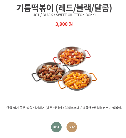 그리고 오늘은 추가로 '기름떢볶이'를 시켰습니다. 미리 알아보고 시킨 건 아닌데 뭔가 맛있을 것 같아서 시켰어요. 비주얼은 완전 극호! 자 그럼 맛 리뷰 들어갑니다.