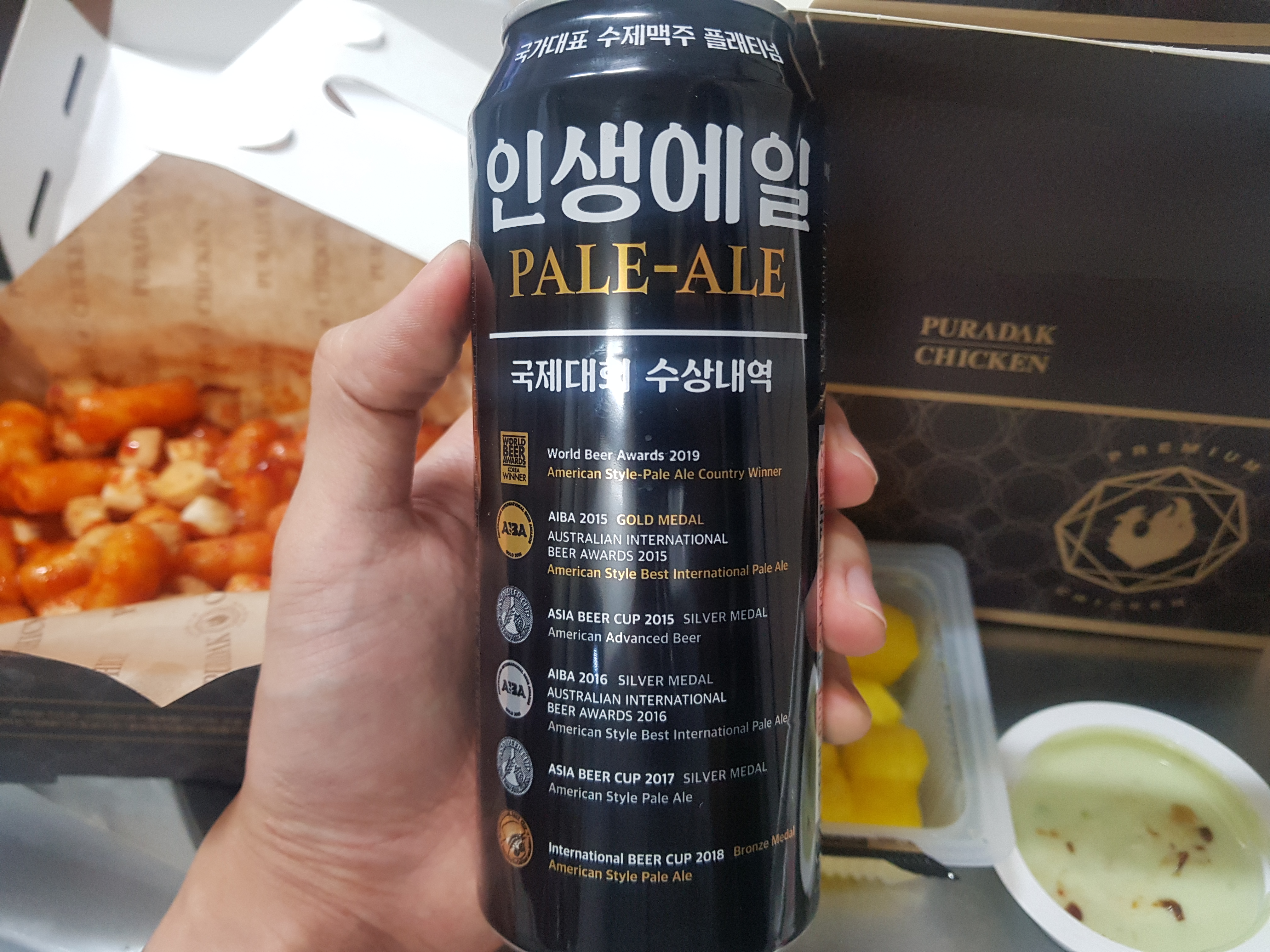 인생 치킨에는 인생 맥주를 마셔줘야겠죠. 오늘은 '인생 에일'로 픽했습니다. 사실 처음 먹어봅니다. 겉에 국제대회 수상내역이라고 떡하니 광고하고 있길래 홀려서 사봤습니다. 그런데 나쁘지 않네요. 사실 먹고 나서 드는 생각이지만 제가 요즘 빠져있는 '말표 흑맥주'가 더 맛있는 것 같긴 합니다. 혹시 말표 흑맥주 맛이 궁금하신 분들은 아래 포스팅을 참고해주세요.