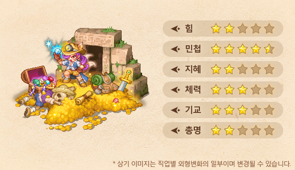 사서 컨셉인 미코입니다. 미코를 보고 느낀 건데 예전 트릭스터 온라인 때는 캐릭터 일러스트가 더 아기자기했던 것 같은데 이번 트릭스터m은 좀 더 성숙한(?) 느낌이 드네요. 게임과 함께 같이 나이를 먹은듯한.. 아무튼, 미코의 포지션은 '힐러'라고 볼 수 있습니다. 총명 스탯은 아마 회복력이나 그와 비슷한 능력에 영향을 주는 스탯이겠죠?