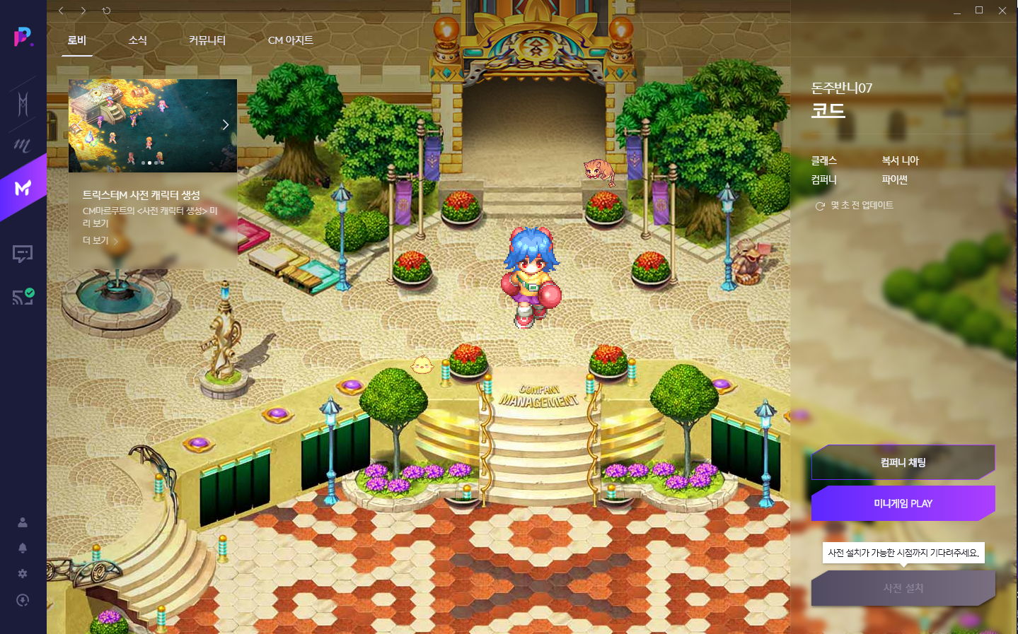 현재 퍼플로 트릭스터m에 접속하면 미니게임만 할 수 있고 게임 설치는 아직 할 수 없습니다. 사전 설치가 가능할 때까지 기다려 달라고 하네요. 어서 플레이할 수 있었으면 좋겠습니다~