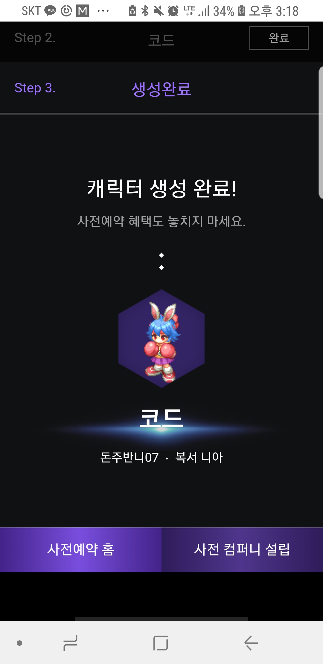 일단 만들면 돌이킬 수 없으니 신중하게 클릭! 하셔야 합니다. 또, 트릭스터m 정식 서비스가 오픈했을 때 사전 캐릭터를 그대로 사용하고 싶다면, 다른 계정 말고, 캐릭터 생성했을 때 사용했던 계정으로 접속해야만 이용이 가능하다고 하니, 주의해주시구요.