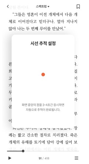 밀리의 서재측은 '시선 추적'기능이 요즘은 다양한 환경에서 독서를 하는 만큼, 손을 쓰기 어려운 상황에서 독서를 하는데 도움이 될 것이라고 말했습니다. 시선 추적 기능에 대해서 알아보면서 궁금한 점이 있었는데요. 사실 얼마나 멀리서 보겠냐만은, 이 기능이 카메라와 거리가 멀어져도 잘 작동할 것인가에 대한 점입니다. 이 부분은 저도 아직 사용해보지 않아서 잘 모르겠네요.