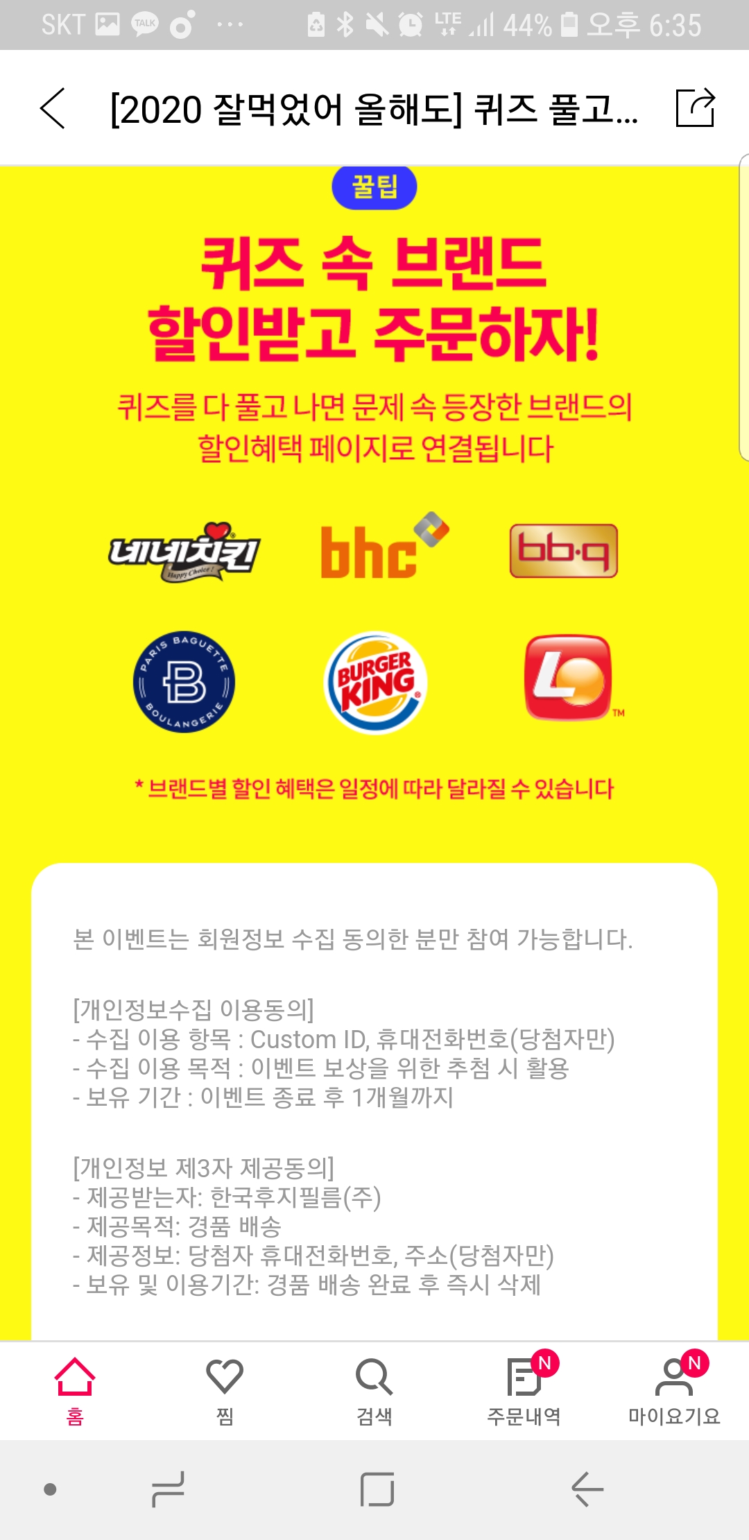 퀴즈는 틀려도 계속해서 다시 풀어볼 수 있습니다. 100점 맞을 때까지 도전할 수 있어요. 포토 퀴즈를 풀고 주문까지하셔야 이벤트에 참여되니 참고해주시구요. 포토퀴즈를 풀면 문제에 나왔었던 브랜드의 할인쿠폰을 받으실 수 있습니다.