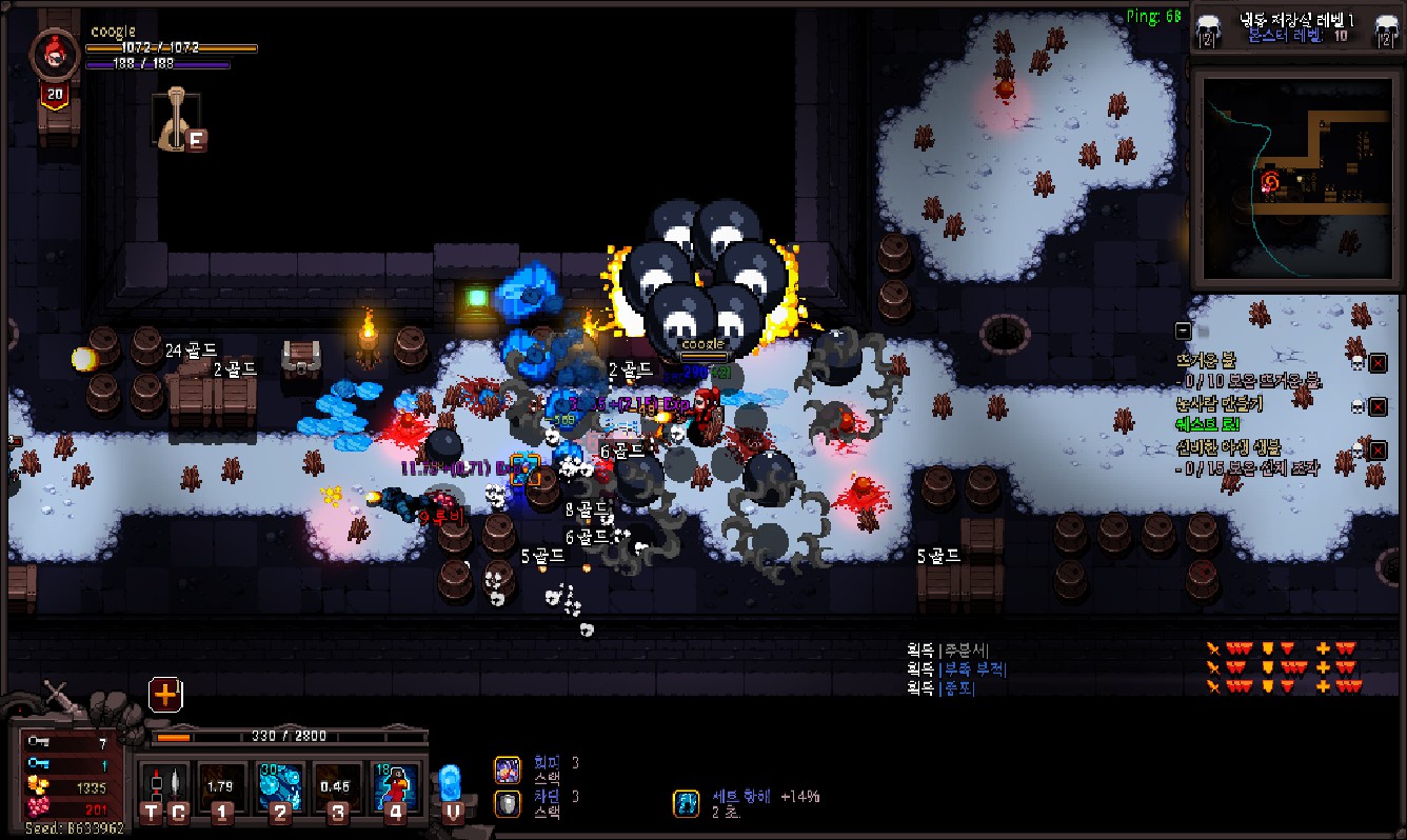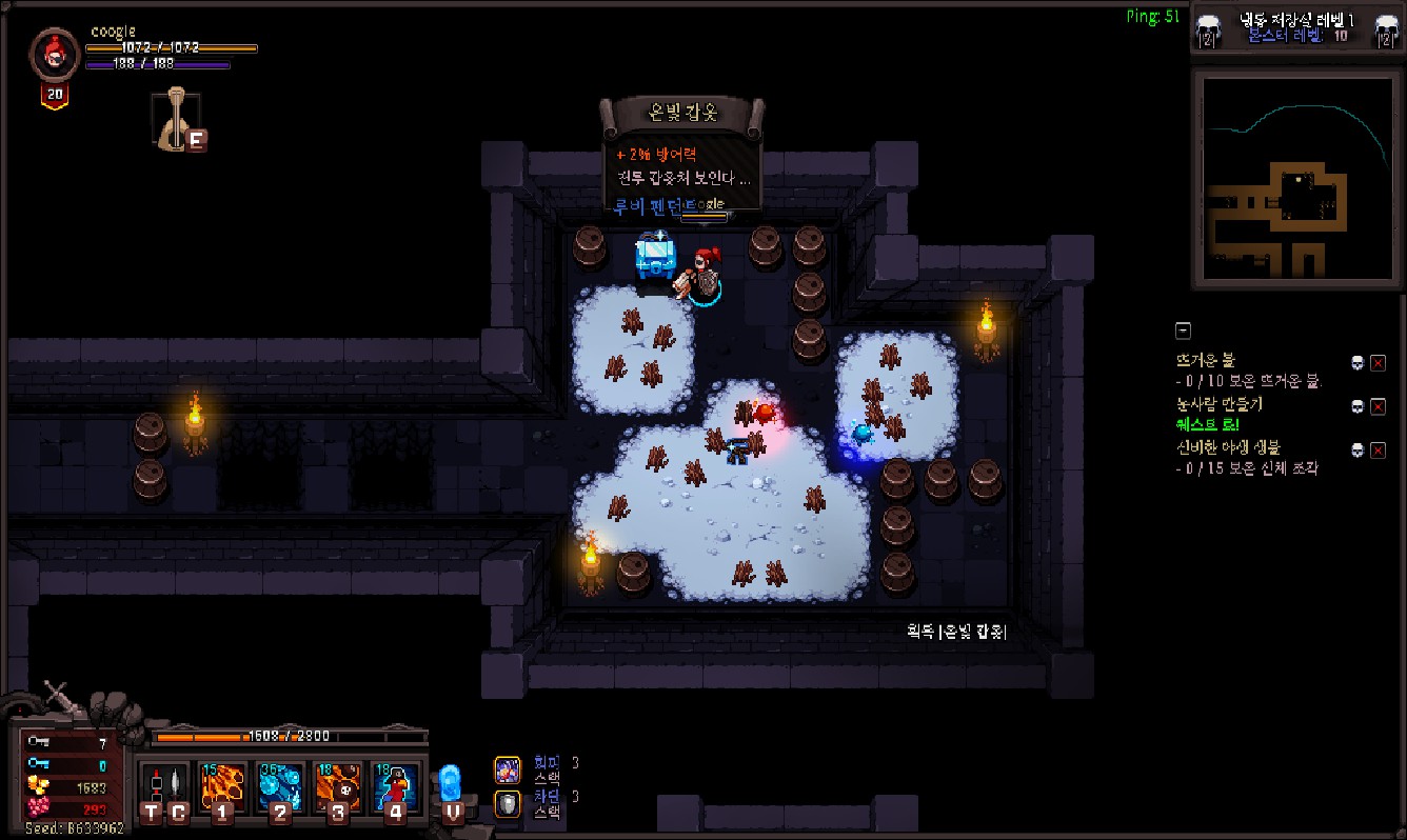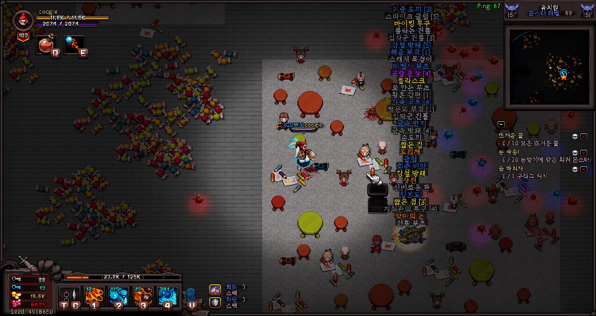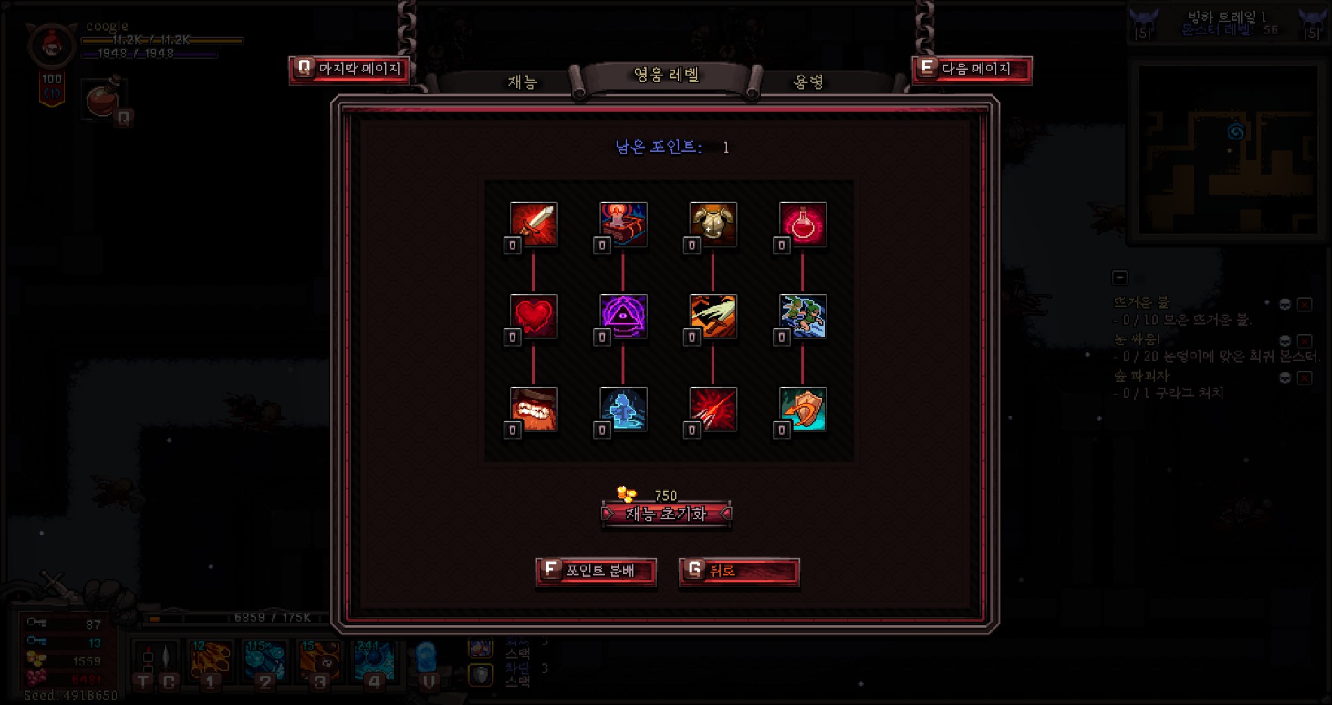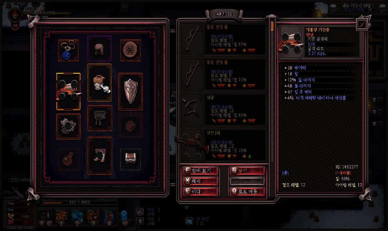 로그라이크 게임이기때문에, 죽어도 아이템은 없어지지 않지만, 그동안 먹었던 유물이 다 날아가기 때문에 조심해야 합니다.